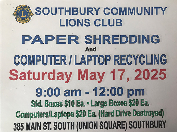 Proceeds support local service projects sponsored by the Southbury Community Lions Club.