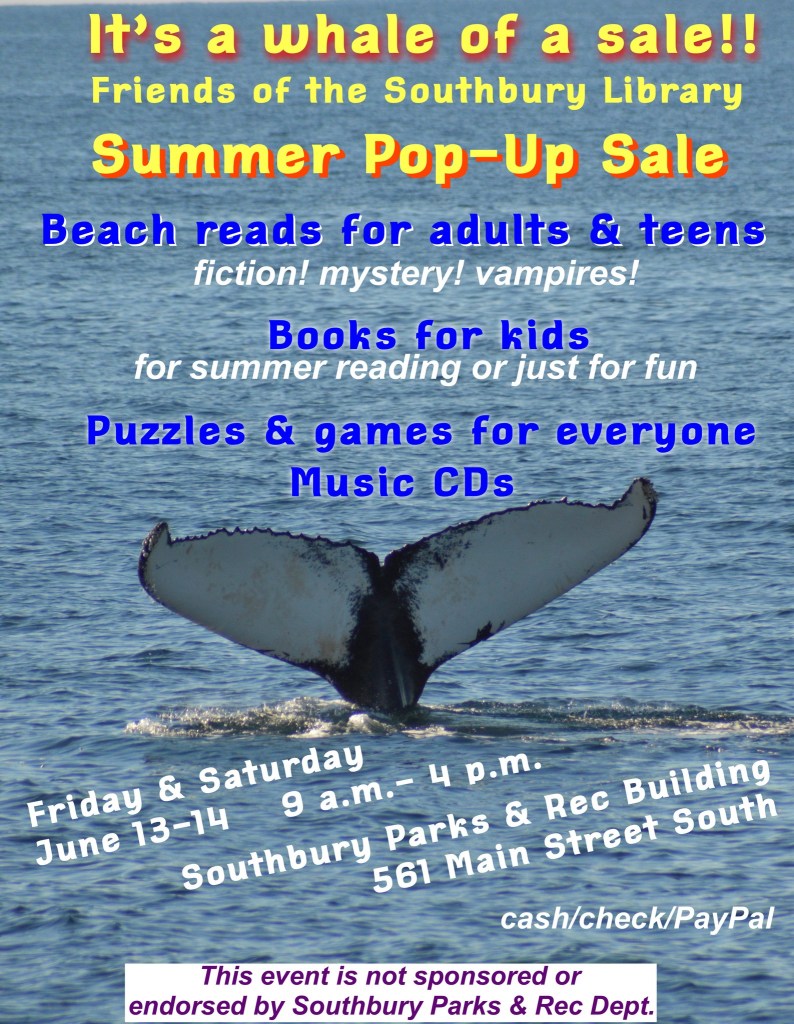 Shop for beach reads, kids’ books, puzzles, games, CDs, and more—all while supporting the Friends of the Southbury Library. The sale is being held at the Parks & Rec building while the library remains closed for repairs. Cash, check, or PayPal accepted. This event is not sponsored or endorsed by the Southbury Parks & Recreation Department.