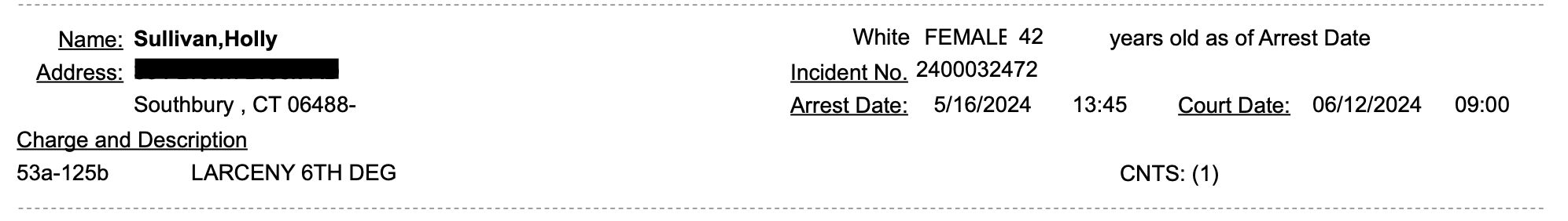 On May 16, 2024, during the height of her medical treatment, Sullivan was cited in a sixth-degree larceny case after failing to scan an item at a self-checkout. She said it was a genuine mistake, made in a moment of limited visibility. The charge was dismissed 11 months later.