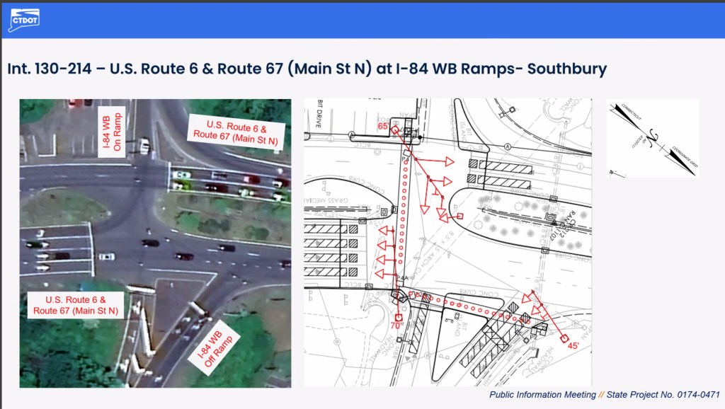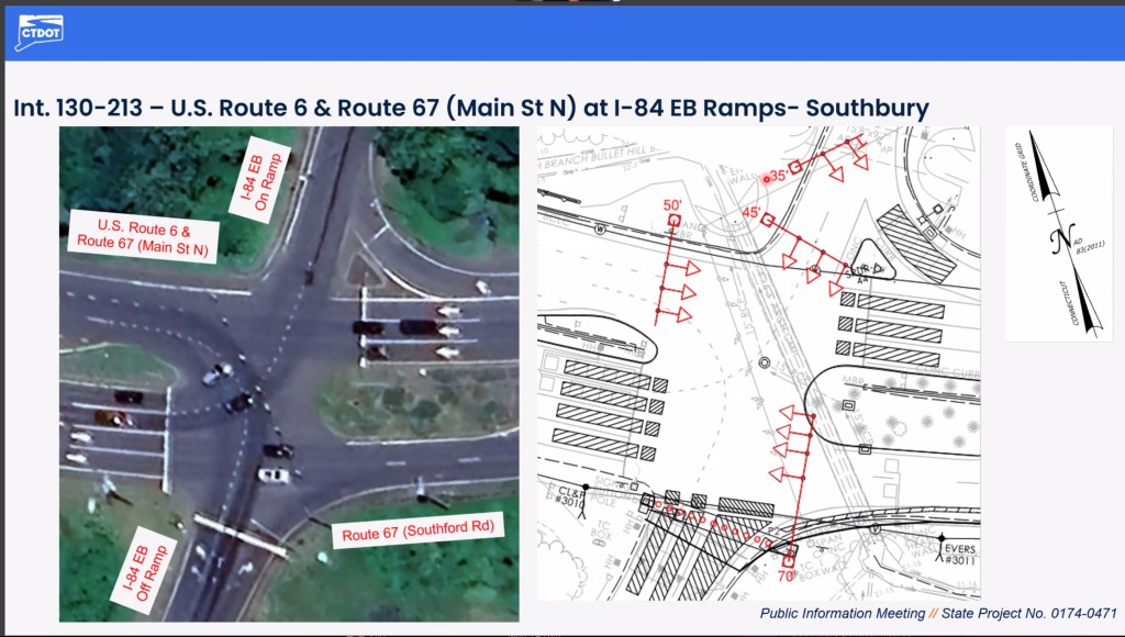 - Routes 6 & 67 (Main Street North) at the I-84 Westbound ramps.