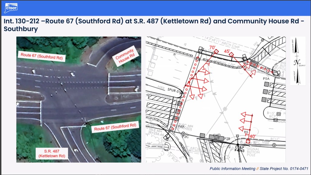 In addition to the five intersections in Southbury, the project includes full replacements in Middlebury, Danbury, Avon, Farmington and Kent. More than a dozen partial replacements are planned along U.S. Route 44 in Avon and Simsbury.