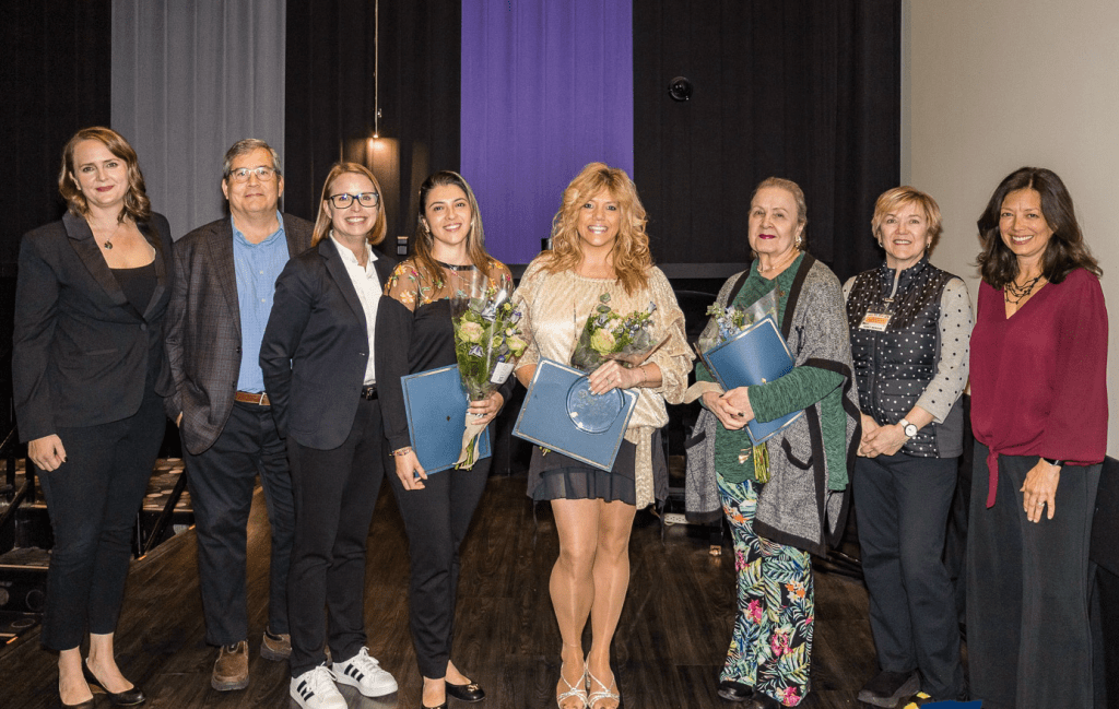 (L-R) Kelly Keenan, Don Winter, Jenny Wojteczko, Alejandra Peláez Muñoz (finalist), Tammy Dunn (2024 Artist of the Year Winner), Faith Vicinanza (David K. Merrill Lifetime Achievement in the Arts recipient), Nancy Monson, Sherrie Romano. (SACA contributed photo)