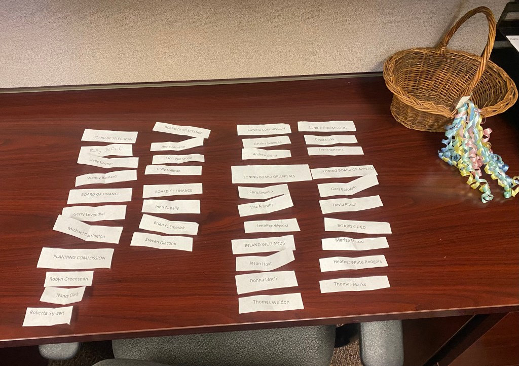 But for offices and commissions with multiple openings – like the Board of Selectmen and Board of Finance – a lottery is held to determine the order of names to appear under their respective party lines.