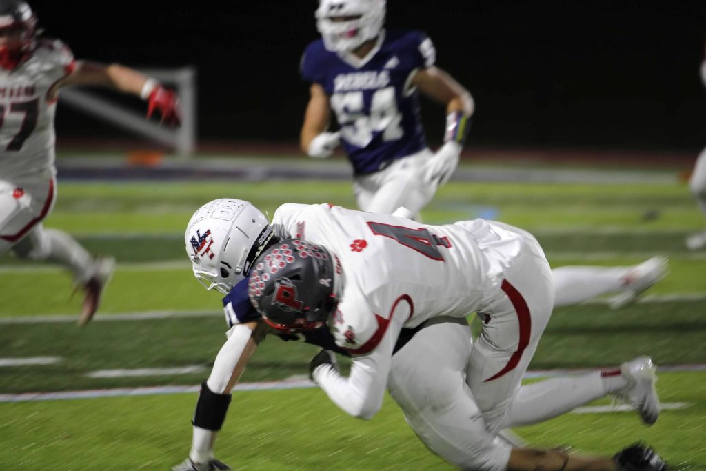 Facing a 21-0 deficit, Pomperaug clawed their way back into the game after giving up three first-half touchdowns to New Fairfield’s Jack Riccio. His night was highlighted by a two-yard toe-tap reception in the back of the end zone, and a 52-yard catch-and-run late in the second quarter.