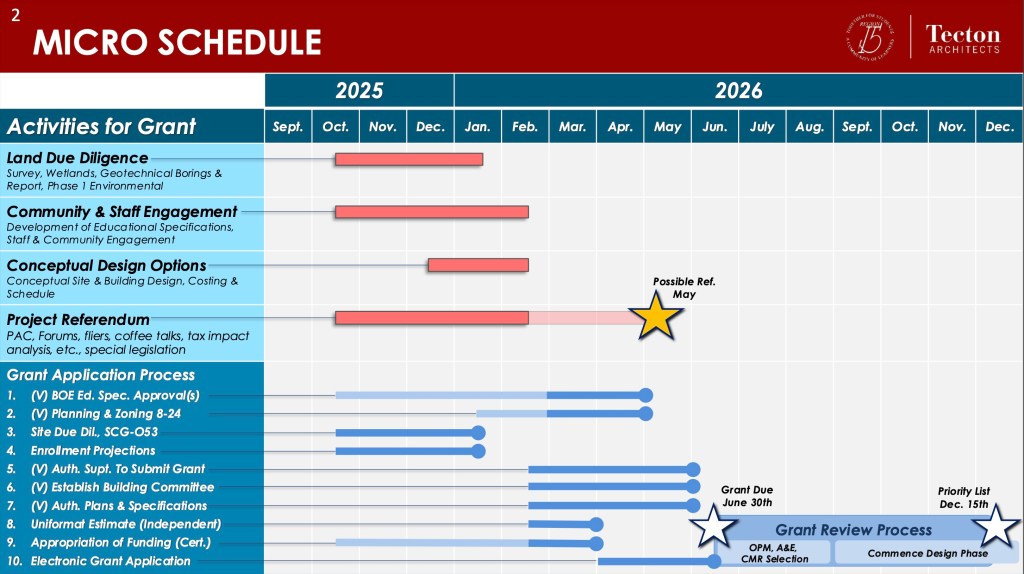 As long-term options continue to be weighed, officials have also pointed to similar in-state decisions in Cheshire and for Madison’s recently opened Neck River Elementary School, having recently gone through their own school construction processes.