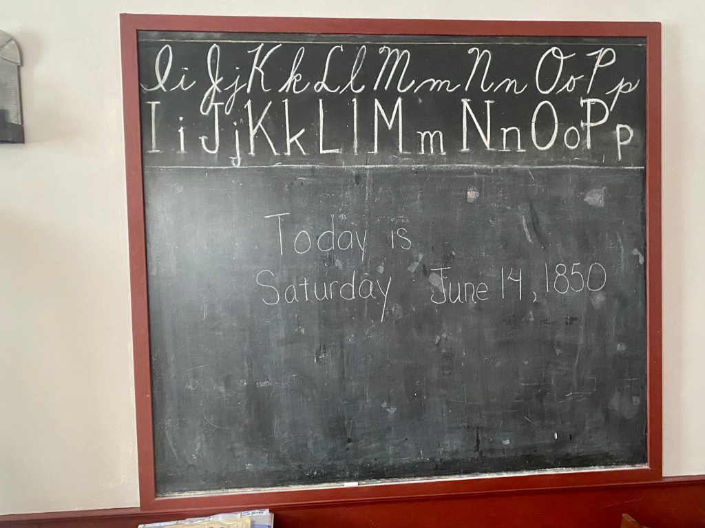 Inside the brick schoolhouse, the chalkboard still reads, “Today is Saturday, June 14, 1850.” Volunteers say they hope it will not remain a lesson frozen in time.